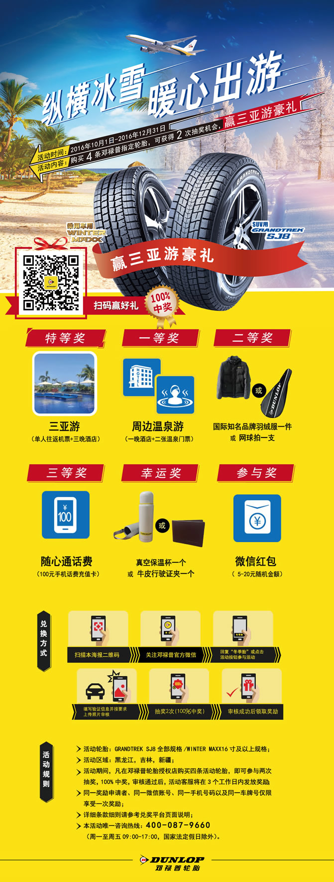 “縱橫冰雪 暖心出游” 購買4條指定輪胎,可獲兩次抽獎(jiǎng)機(jī)會(huì),贏三亞游豪禮!