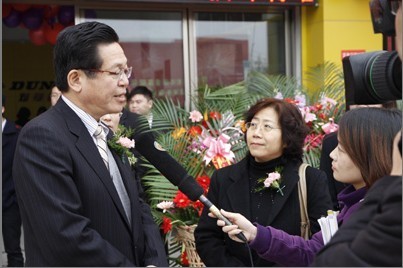 高見董事長(zhǎng)接受本地媒體采訪,介紹鄧祿普輪胎的發(fā)展情況。