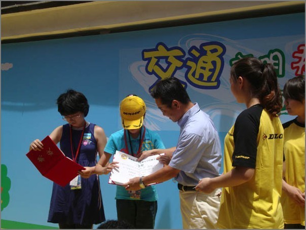 ??????? 本次的少兒交通安全繪畫大賽,征集了來自上海、北京、廣州、大連等24所小學(xué)的在校學(xué)生創(chuàng)作的繪畫作品,并得到了少年日報總編杜曉峰先生、上海寓教于樂投資管理有限公司 總經(jīng)理 朱寅先生的大力支持,讓優(yōu)秀的繪畫作品走入了世博會?,F(xiàn)在,優(yōu)秀的作品評選已經(jīng)結(jié)束,經(jīng)過將近一個月的嚴(yán)格評選,一等獎1名、二等獎2名、三等獎10名的獲獎名單已經(jīng)確定,最終上海的浦明師范附屬小學(xué)的葉文妍同學(xué)獲得了本次少兒繪畫大賽的一等獎。7月25日,在上海世博園內(nèi)舉辦的盛大頒獎典禮上,獲獎的小同學(xué)們在歡樂的氣氛中接過了由住友橡膠(常熟)有限公司總經(jīng)理野尻恭先生、副總經(jīng)理西口豪一先生、少年日報社總編杜曉峰先生頒發(fā)的證書及獎品,并獲得了暢游世博會的邀請。在頒獎典禮的現(xiàn)場,所有優(yōu)勝的獲獎作品都被擺放在Abilia育樂灣的鄧祿普體驗區(qū)內(nèi),吸引了來自各地的眾多游客的目光。在歡樂的氣氛中,獲獎的小同學(xué)們攜手開始世博會的游覽,至此,由鄧祿普舉辦的少兒交通安全繪畫大賽畫上了圓滿的句號,不過這對于鄧祿普公司來說,將是下一個交通安全推廣活動的起點,請讓我們大家拭目以待,鄧祿普在2011年,再次為我們奉上更加生動交通安全活動吧。