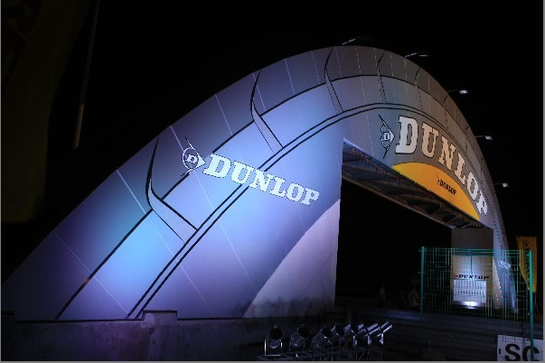 ??????? 2010年8月21日晚,“激情四溢 鄧祿普勝利之夜”--鄧祿普橋竣工揭幕儀式,在上海天馬山賽車(chē)場(chǎng)舉行。隨著住友橡膠(常熟)有限公司董事長(zhǎng)兼總經(jīng)理野尻恭先生按動(dòng)觸發(fā)球,兩支火箭劃破夜空,飛躍數(shù)百米,點(diǎn)亮了位于天馬山賽車(chē)場(chǎng)八號(hào)彎的鄧祿普橋。在絢爛煙火與燈光的映襯下,這座新落成的建筑熠熠生輝,驚艷全場(chǎng)。據(jù)悉,與佇立于法國(guó)勒芒賽道的鄧祿普橋外一樣,該橋?qū)⒁浴坝觿倮邩s譽(yù)之橋”的姿態(tài),為車(chē)手們加油鼓勁,并且還將傳遞鄧祿普輪胎對(duì)中國(guó)汽車(chē)運(yùn)動(dòng)以及汽車(chē)產(chǎn)業(yè)欣欣向榮的祝愿。