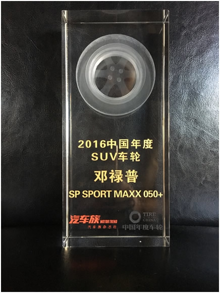 2016年8月12日,由《汽車族》主辦的“2016(第九屆)中國年度車輪頒獎盛典”在上海圓滿落幕。此次盛典是中國專業(yè)汽車傳媒對輪胎產(chǎn)品全面、系統(tǒng)的年度盤點(diǎn)。鄧祿普SP SPORT MAXX 050+榮獲“2016中國年度SUV車輪”的殊榮。