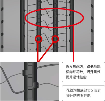 從橡膠材料層面來(lái)看, SP196運(yùn)用了鄧祿普輪胎獨(dú)創(chuàng)的4D NANO DESIGN技術(shù)開發(fā)的新胎面橡膠配方,可最大限度發(fā)揮橡膠分子的潛能。同時(shí),加入微粒子碳黑,通過(guò)與聚合物的緊密結(jié)合,降低輪胎運(yùn)行過(guò)程中的發(fā)熱量,降低輪胎滾動(dòng)阻力。全新的胎面配方有效兼顧低滾組、強(qiáng)耐磨兩大性能,充分滿足了長(zhǎng)途客運(yùn)車輛對(duì)于降低油耗及延長(zhǎng)壽命的需求。