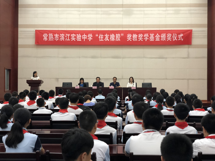 近日,常熟市濱江實(shí)驗(yàn)中學(xué)舉辦了“住友橡膠獎(jiǎng)教獎(jiǎng)學(xué)基金”捐贈(zèng)及頒發(fā)儀式,獎(jiǎng)勵(lì)在教學(xué)過(guò)程中做出突出貢獻(xiàn)的教師以及在學(xué)習(xí)當(dāng)中取得優(yōu)異成績(jī)的學(xué)生。該基金的創(chuàng)立者為積極踐行企業(yè)社會(huì)責(zé)任,熱心公益事業(yè),助力教學(xué)發(fā)展的住友橡膠(中國(guó))有限公司。住友橡膠董事長(zhǎng)山田直樹(shù)、濱江實(shí)驗(yàn)中學(xué)師生代表共計(jì)300人出席了頒發(fā)儀式。