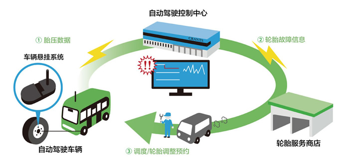 這一鏈接的完成,使得對(duì)無(wú)人駕駛車輛進(jìn)行胎壓遠(yuǎn)程監(jiān)控成為可能,同時(shí)將對(duì)無(wú)人駕駛狀態(tài)下發(fā)生爆胎等輪胎故障時(shí)的預(yù)防保養(yǎng)提供支持。今后還將進(jìn)一步針對(duì)胎壓異常的各種狀況,構(gòu)筑服務(wù)體系。