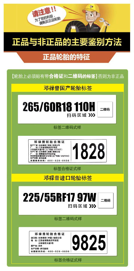 如您選擇購買鄧祿普輪胎時,您可以通過以下方式驗(yàn)證鄧祿普輪胎的真?zhèn)巍?/strong>
