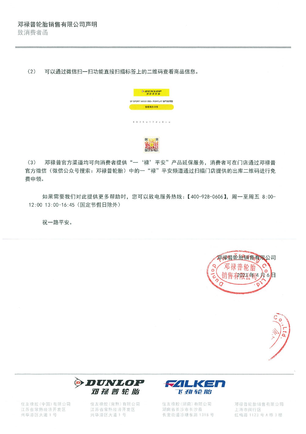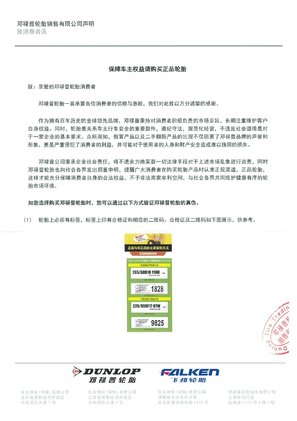 致:親愛的鄧祿普輪胎消費(fèi)者